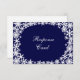 Delicate snowflakes in a lacy pattern on a deep blue background, accent this coordinating RSVP for the Navy Winter Lace Wedding Invitation.