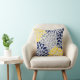 Navy, Yellow and Gray Floral Background Throw Pillow