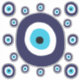 Patterned sticker of traditional navy blue, turquoise and white protective evil eye circle symbols