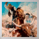 NC Wyeth , was an American artist known for his realist paintings and illustrations. During his lifetime, Wyeth became one of America’s greatest illustrators and he created over 3,000 paintings and illustrations. His early trips to the old west inspired images of cowboys and Native Americans that dramatized the frontier. This painting is called “Cutting Out” and depicts a cowboy on horseback with a whip cutting out a long-horn steer from a milling herd of cattle.