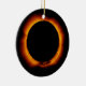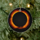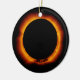 NASA view of a near total solar eclipse shows a bright ring of the orange light of the sun and it’s corona around the dark image of the moon as the partial eclipse maximizes.