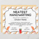 Celebrate your student's exceptional penmanship with the "End of Year Neatest Handwriting Student Recognition Award." This beautifully designed certificate is perfect for acknowledging hard work and dedication in achieving the neatest handwriting. Ideal for teachers and parents alike, it's a wonderful way to honor and motivate young scholars.