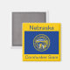 An authentic fine quality image of the flag of Nebraska set between the state name and nickname over a flag-color background.