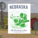 Capture the pioneer spirit of Nebraska with this vintage-style illustration featuring “The Cornhusker State” and “Est. 1867.” The artwork depicts two oxen pulling an old-fashioned wooden wagon through golden fields, evoking the state’s rich agricultural heritage and frontier history. A timeless piece for collectors of Americana and U.S. state postcards.
