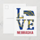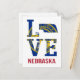 Nebraska love. Nebraska in red uppercase font the with the word loved filled with the state flag. The letter O in love is the silhouette with the outline of the state of Nebraska.
