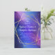 Geometric gold lines and crystal shapes, Beautiful purple and blue nebula outer space painted ink watercolor artwork with night stars on a crystal clear night sky. Perfect for a spiritual celestial or modern religious ceremony and celebration. Stylish rainbow nebula contrasts with the geometric constellations and outer space galaxy. Great for the astronomy fan who loves the moon and starry cosmic universe.