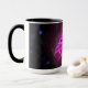Nebula fantasy space design for a jumbo mug with black on the handle and the inside. The mug has nebula gasses surrounding a passion plant in lavender with space and blue stars. Pretty and unusual design. Would also be a nice gift.