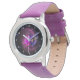 Nebula watch design on a purple watch strap. The watch has a fantasy space design with a passion flower surrounded by space gasses and stars. The numbers can be removed, it is your choice.