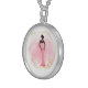 I chose gold plated so that the metal would not react with my skin oils and perspiration. But, I changed the necklace from the gold plated one to a sterling silver. My skin cells will tarnish the silver. But it will not look as bad if some portion of the gold plated necklace somehow became compromised. Zazzle did a find job turning the picture into a pendant for me. As you can see, the colors and the printing of the final product, match the preview. The picture I took is not very clear. But I am pleased with the product I received.