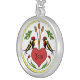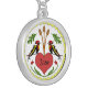 Folksy yet stylish necklace with our Long, Happy Relationship Hex design. Two distelfinks, representing good luck for the couple, are perched on a red heart representing lasting peace and purity in their friendship. Orange shafts of wheat stand for abundance in career and family. Green oak leaves represent growth, fertility and strength. Small red tulips invoke passion in faith, hope and trust in one's partner. Bound by yellow scallops, symbolizing good health and smooth sailing in life, this hex is the perfect blessing for a long, happy relationship. Text is fully customizable or may be removed.