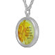 Silver Plated round pendant necklace , displaying beautiful yellow daffodils and the scripture Psalms 136:1 "Give thanks to the LORD, for he is good. His love endures forever." See matching theme in my store.