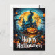 This unique Happy Halloween postcard features an illustration of a sinister looking pumpkin, under a full moon, deep in the forest. Please feel free to adjust all the available options as you wish.