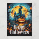 Nefarious Glowing Happy Halloween Pumpkin Postcard