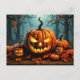 Nefarious Glowing Pumpkin In the Forest Postcard