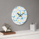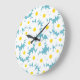 Negative Space Daisies white yellow on blue Large Clock