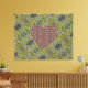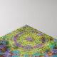 A vibrant heart shape stands out against a backdrop of kaleidoscopic green and blue patterns, creating a captivating visual contrast. Intricate geometric designs fill the space, combining colorful circles and star-like formations.