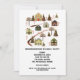 Creative Christmas holiday party invites featuring decorated houses in a snowy village.