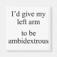 Black letters and a funny saying goes, 'I'd give my left arm to be ambidextrous'