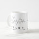 Nelda spelled out in amino acids as N E L D A (Asparagine Glutamic acid Leucine Aspartic acid Alanine) on a mug for the scientist in you.