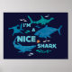 Disney Fast Fashion | Finding Nemo | Nemo is swimming in the ocean with sharks Bruce, Anchor, Chum, and schools of other fish. The sharks pledge "I Am A Nice Shark" is written out in bold text within this graphic.