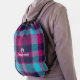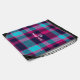 A bold and energetic plaid, blending deep indigo and rich magenta with striking midnight blue accents, illuminated by electric turquoise threads that pop with modern flair. Perfect for statement pieces.
