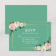 Neo Mint Pink White Floral Gold Wedding RSVP Card