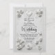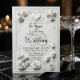 An elegant white and gray floral composition with sculpted depth, formal typography, and timeless symmetry—designed for refined wedding stationery aesthetics.This design features a monochromatic white and soft gray palette (cool whites with subtle neutral shadows) arranged in a balanced, formal layout. Sculpted roses and hydrangea florals appear in a faux embossed plaster bas-relief style, framed by an ornate filigree border, with interlocking monogram circles and classic serif typography paired with flowing calligraphy script for hierarchy and contrast.