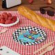 Neon 90's retro Ten is a vibe 10th birthday paper plates with hearts, daisies, disco ball and checker background.
