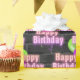 Happy birthday pink neon sign with balloon bouquet on black brick pattern