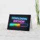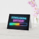 A bright neon computer loading bar in rainbow colors on a black background, indicating a download for a birthday celebration