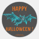 Fun and funny design for Halloween, neon bat (looks really creepy under a black light) exclaiming Happy Halloween. Great for sealing Halloween cards or as goodie bag treats. Customize by changing the text to reflect your own Halloween thoughts. Happy Halloween!