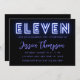 Neon Blue 11th Birthday Invitation