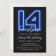 Neon Blue 14th Birthday Invitation