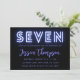 Neon Blue 7th Birthday Invitation
