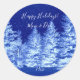 Neon Blue Christmas Tree Classic Round Sticker