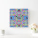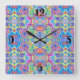Neon Blue, Lime, Purple & Orange Swirl Pattern Square Wall Clock