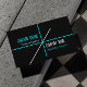 Black business card with a neon blue accent color for a professional, practical, and clean look that's still eye catching. Black and neon blue business card with crossed lines and retro fonts for any profession.