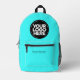 Eyecatching playful vibrant bright Neon Blue | Personalized Corporate Logo and Text Modern Business Printed Backpack