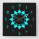 Neon Blue w/Star and Fun Numbers Square Wall Clock