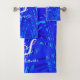 Neon Blue Wave Abstract Monogram Initials Nautical Bath Towel Set
