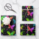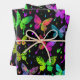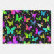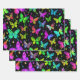 Neon Butterflies on Black Background Vibrant Wrapping Paper Sheets