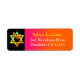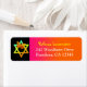 This orange, pink and black return address label has an orange and yellow neon butterfly and a Star of David on it that matches the Bat Mitzvah invitation shown below.