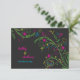 Customize the text on this neon chalkboard floral doodle wedding RSVP reply card. The colors are neon pink, neon yellow, neon blue, and neon green on a dark charcoal background. What a fun response card for a casual offbeat wedding. You can change the text with the personalize options. For more extensive changes to the card, including changing the font, font color, or text layout, use the customize option. This is a cute reply card for a less traditional wedding. Great for a wedding taking place in a funky cafe. Some matching products you might like: