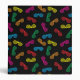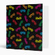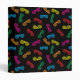 Vector illustration of multi-colored party glasses in a repeating pattern against a black background.