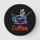 Neon Coffee Sign Round Clock