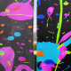 Cool Neon Colorful Pattern Blackout Curtains. Paint splatter pattern in black, fluro pink, blue, orange, neon lime green. Cheerful retro 90s/80s feel - great way to add a ‘splash of color’ to your room - haha. But seriously, great designer curtains to liven up your space.