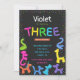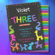 Neon colors animal balloons 3rd birthday invitation