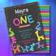 Neon colors animal balloons First birthday Invitation