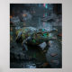 A fearsome neon crocodile emerges through a flooded futuristic sector, built from armored scales, glowing hydraulic seams, and razor-edged cyber plating. Electric blue, cyan, emerald, and amber light pulse across its powerful body while sharp eyes lock onto unseen prey. Submerged streets, broken barriers, warning lights, drifting debris, rain-soaked concrete, and reflective water create a tense cinematic atmosphere. This bold reptile design blends primal danger with sleek sci-fi energy, perfect for gaming rooms, offices, collectors, and lovers of powerful predator themes.