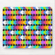 This mouse pad has a geometric design of neon diamonds overlapping each other on a field of black.